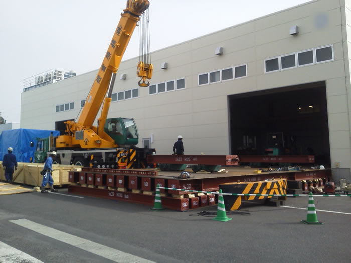 外国製プレス機の車上受けから搬入・据付までを行いました。