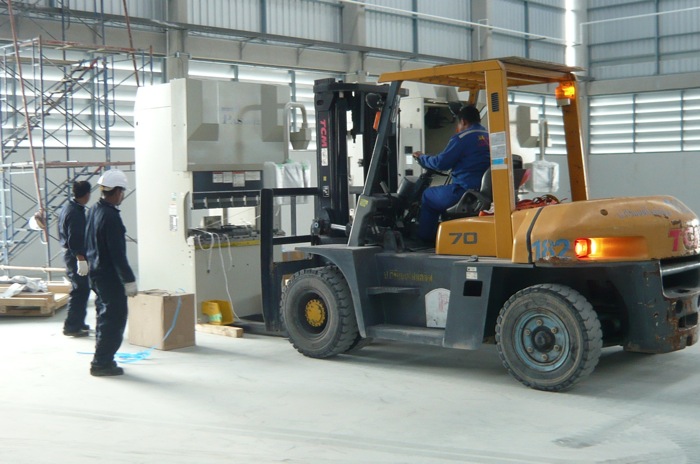 タイ現地にてコンテナ開梱、荷降し作業。